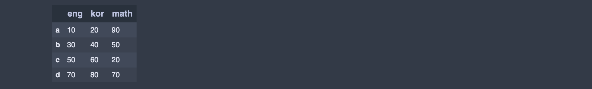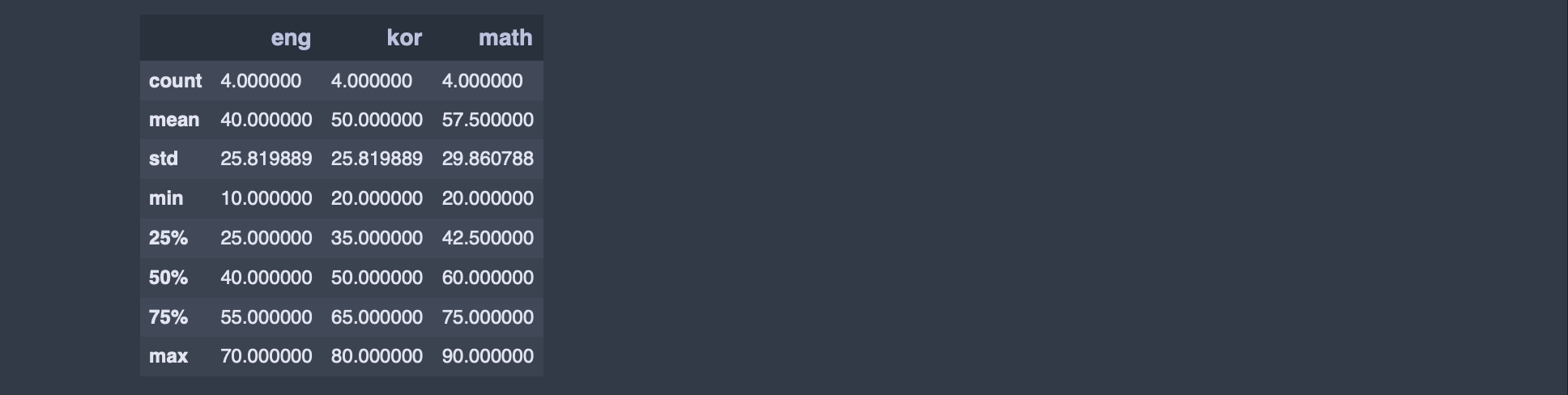 ※ 일반함수들은 default(row별), axis=1(column별) 이므로 주의