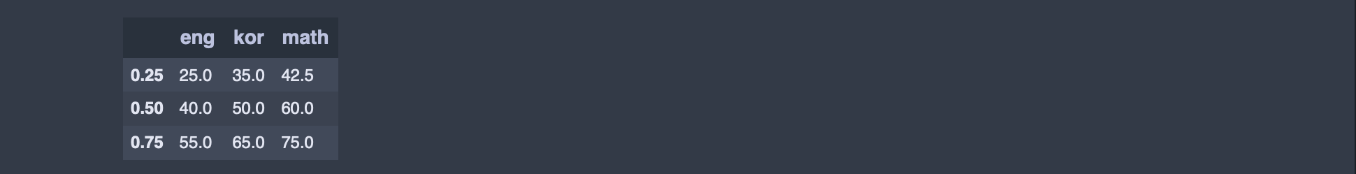 df.quantile([0.25,0.5,0.75])