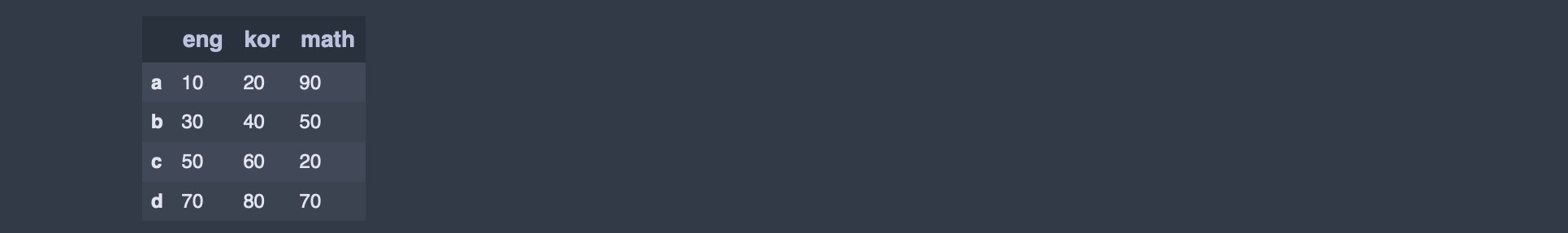 print(i, sr['eng'], sr['kor'], sr['math'] )