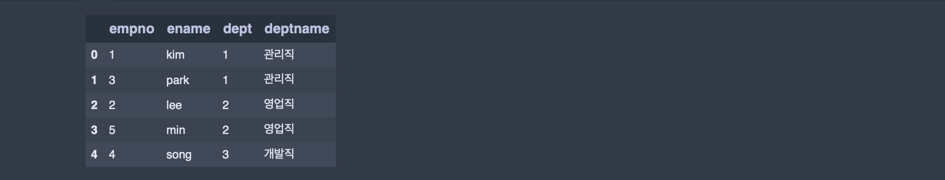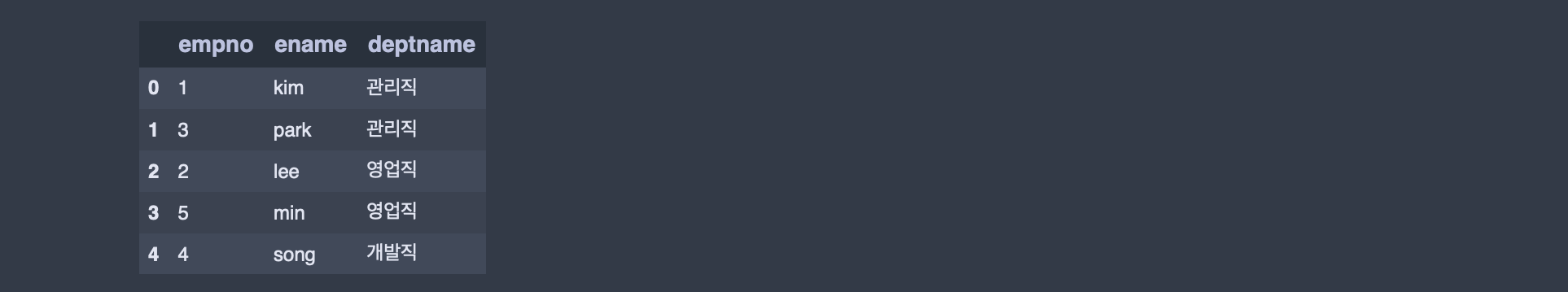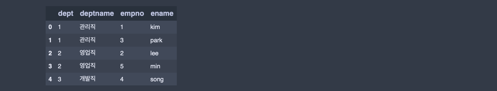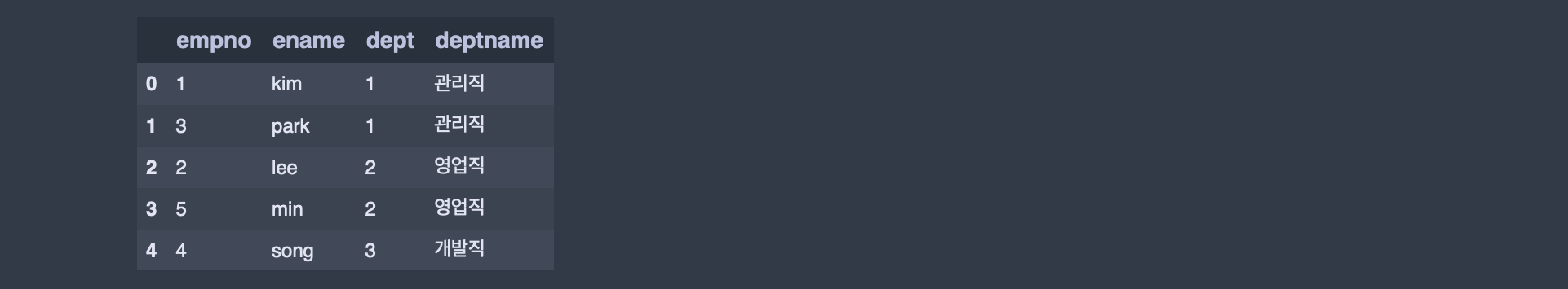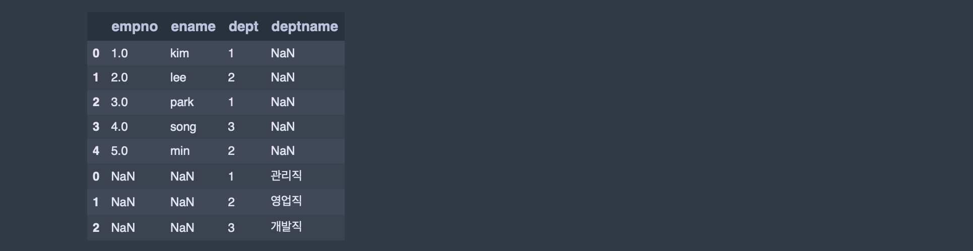 pd.concat([emp,dept],axis=1) #컬럼으로 결합