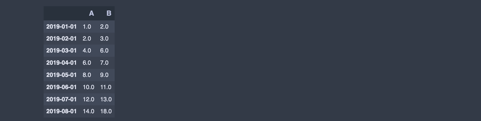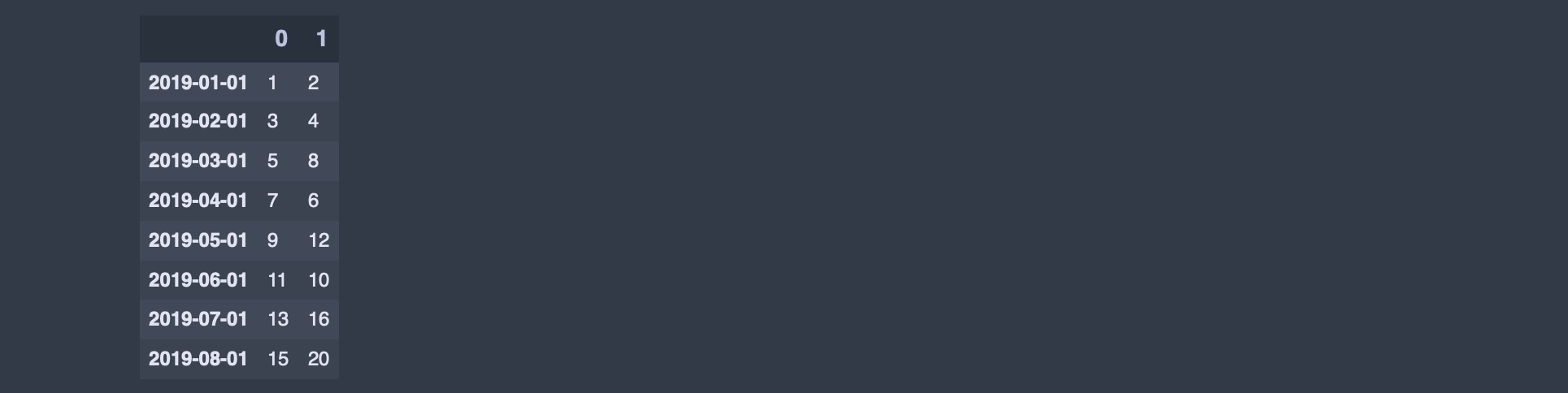 df1.index = [datetime(2019,1,1),datetime(2019,2,1),datetime(2019,3,1),datetime(2019,4,1),