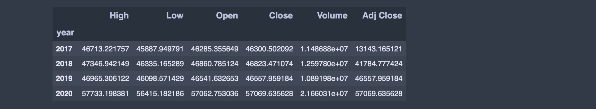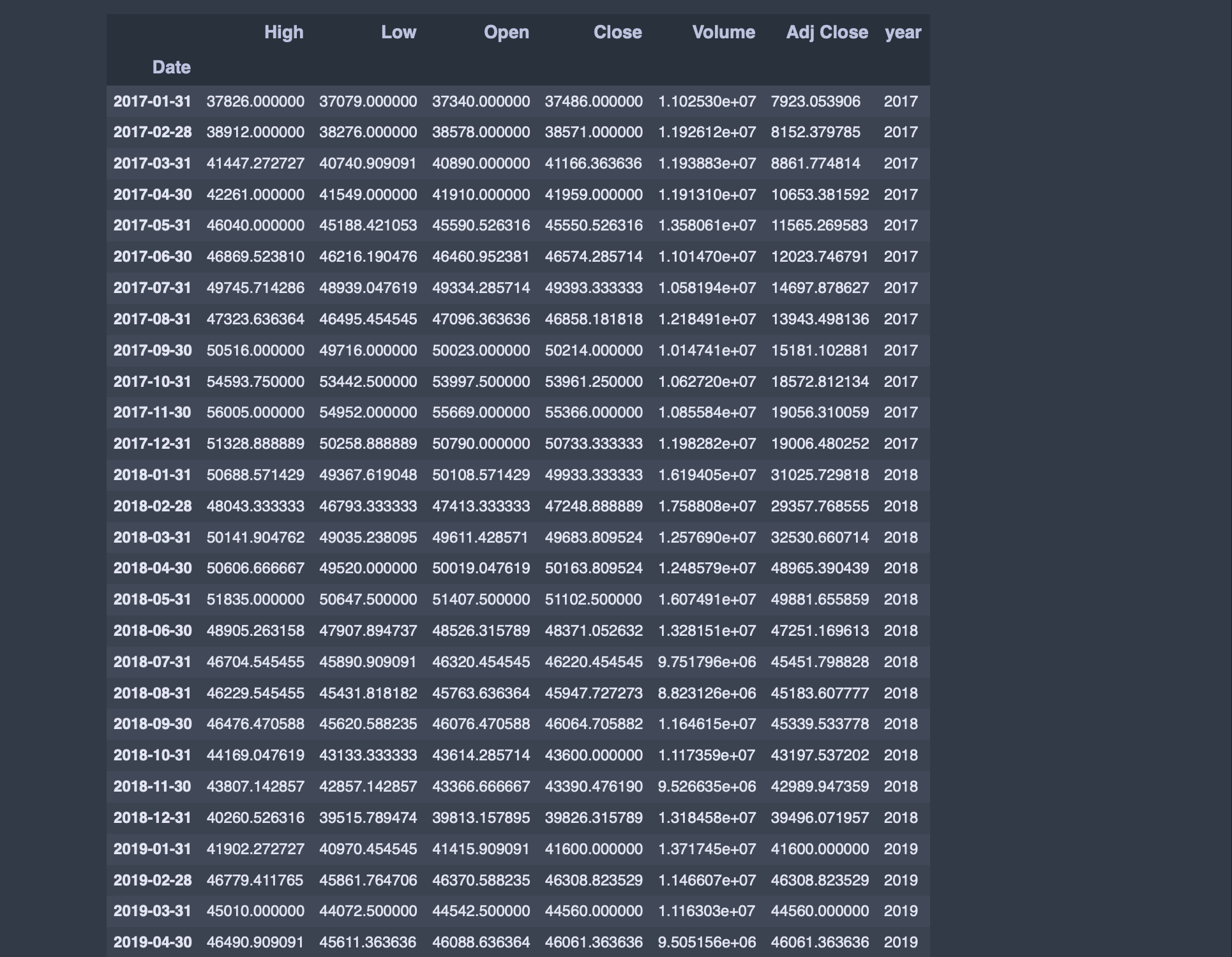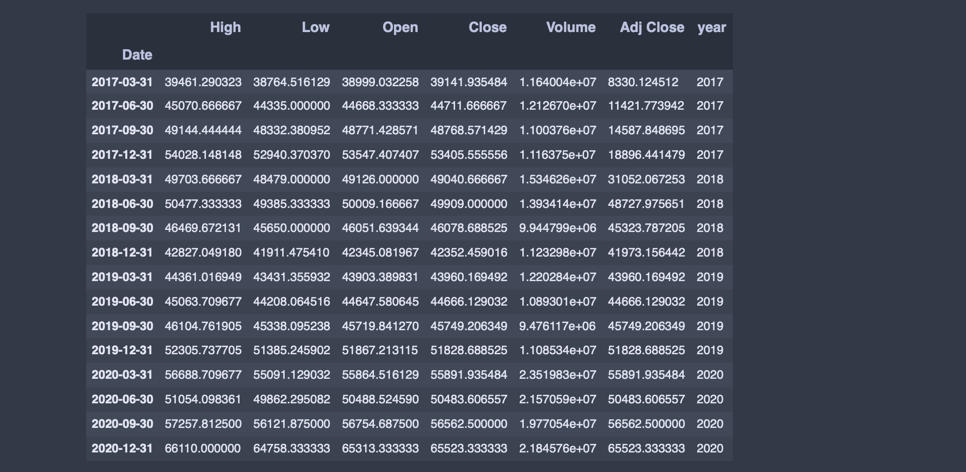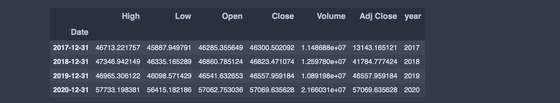 samsungDF['year'] = samsungDF.index.year