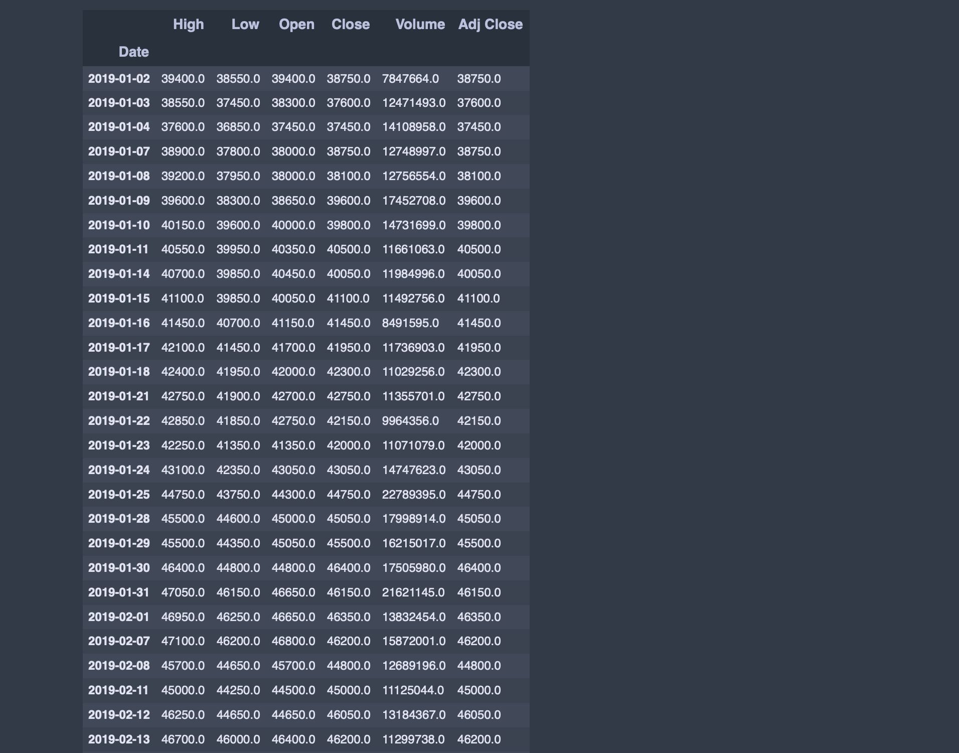 # data.get_data_yahoo(종목코드, 시작날짜, 끝날짜)