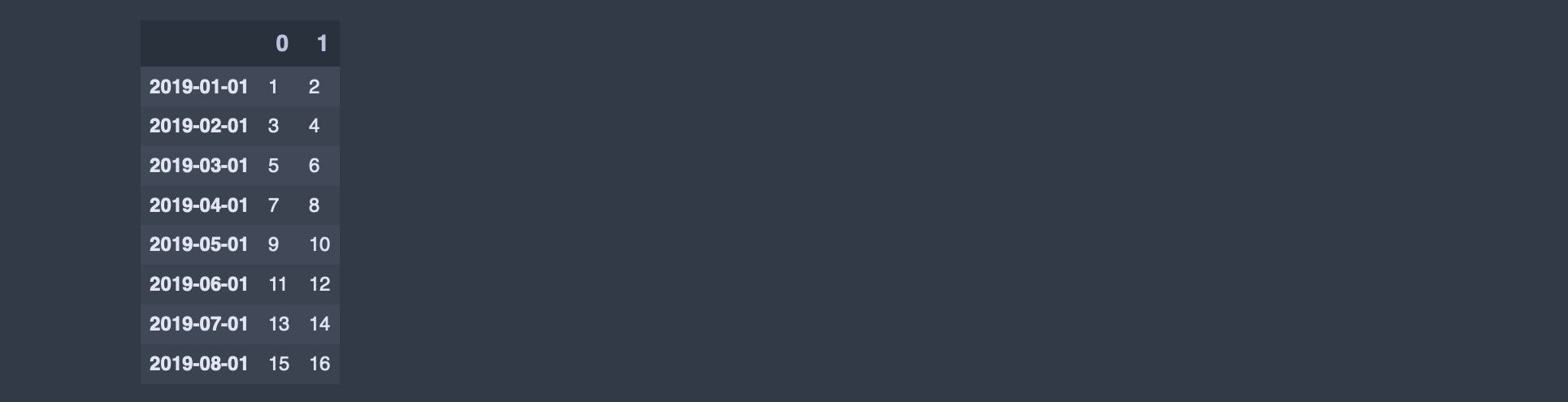 DatetimeIndex(['2019-01-01', '2019-02-01', '2019-03-01', '2019-04-01',