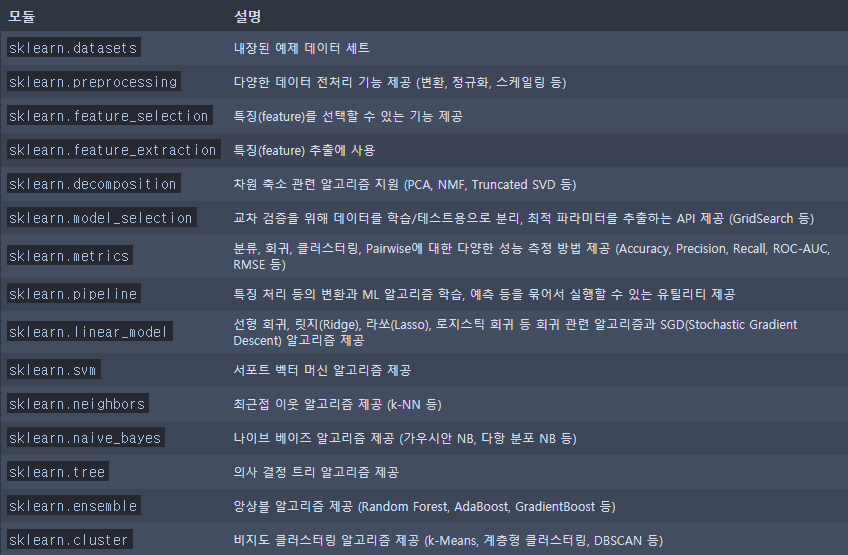 - 다양한 머신러닝 알고리즘을 구현한 파이썬 라이브러리
