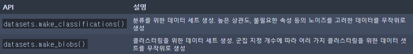 - 분류와 클러스터링을 위한 표본 데이터 생성
