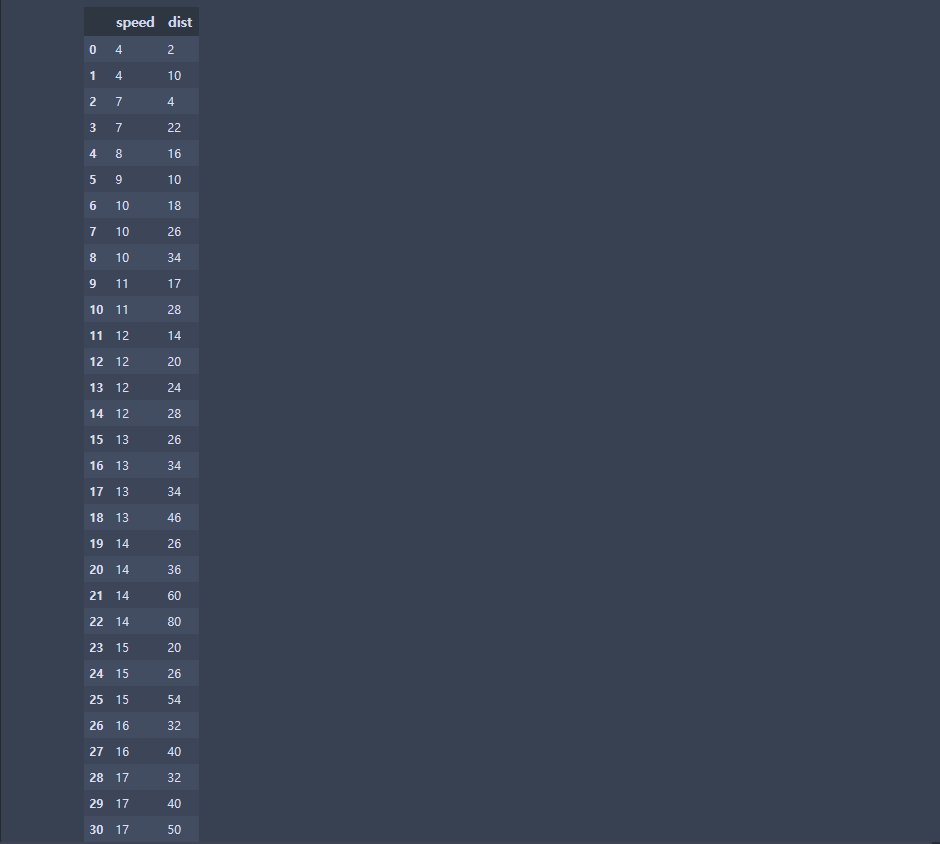 python 파일 경로에 data4 폴더 만든 후 다음의 cars.csv파일 넣어놓기