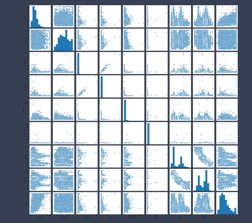 'DESCR': '.. _california_housing_dataset:\n\nCalifornia Housing dataset\n--------------------------\n\n**Data Set Characteristics:**\n\n :Number of Instances: 20640\n\n :Number of Attributes: 8 numeric, predictive attributes and the target\n\n :Attribute Information:\n - MedInc median income in block\n - HouseAge median house age in block\n - AveRooms average number of rooms\n - AveBedrms average number of bedrooms\n - Population block population\n - AveOccup average house occupancy\n - Latitude house block latitude\n - Longitude house block longitude\n\n :Missing Attribute Values: None\n\nThis dataset was obtained from the StatLib repository.\nhttp://lib.stat.cmu.edu/datasets/\n\nThe target variable is the median house value for California districts.\n\nThis dataset was derived from the 1990 U.S. census, using one row per census\nblock group. A block group is the smallest geographical unit for which the U.S.\nCensus Bureau publishes sample data (a block group typically has a population\nof 600 to 3,000 people).\n\nIt can be downloaded/loaded using the\n:func:`sklearn.datasets.fetch_california_housing` function.\n\n.. topic:: References\n\n - Pace, R. Kelley and Ronald Barry, Sparse Spatial Autoregressions,\n Statistics and Probability Letters, 33 (1997) 291-297\n'}