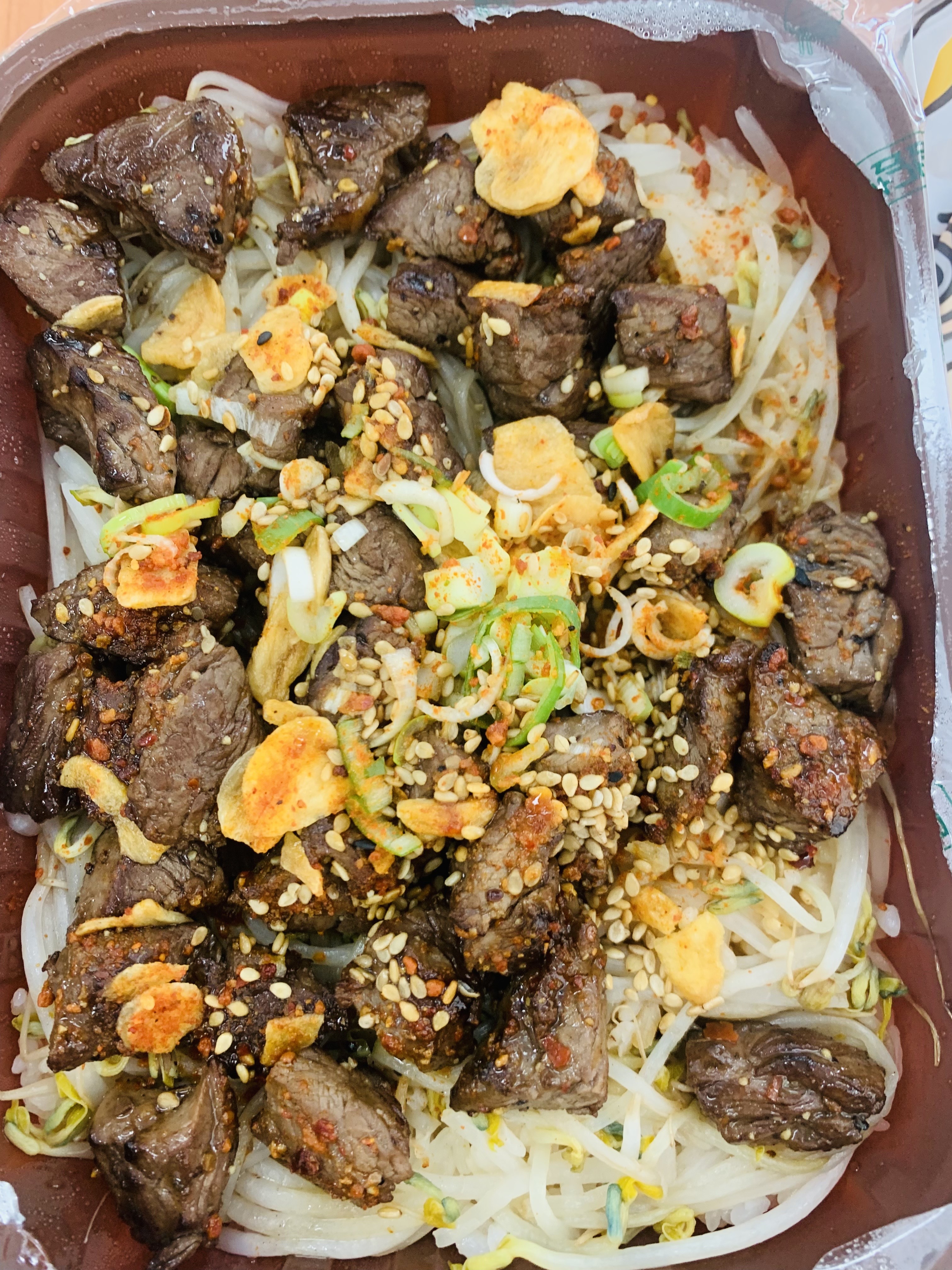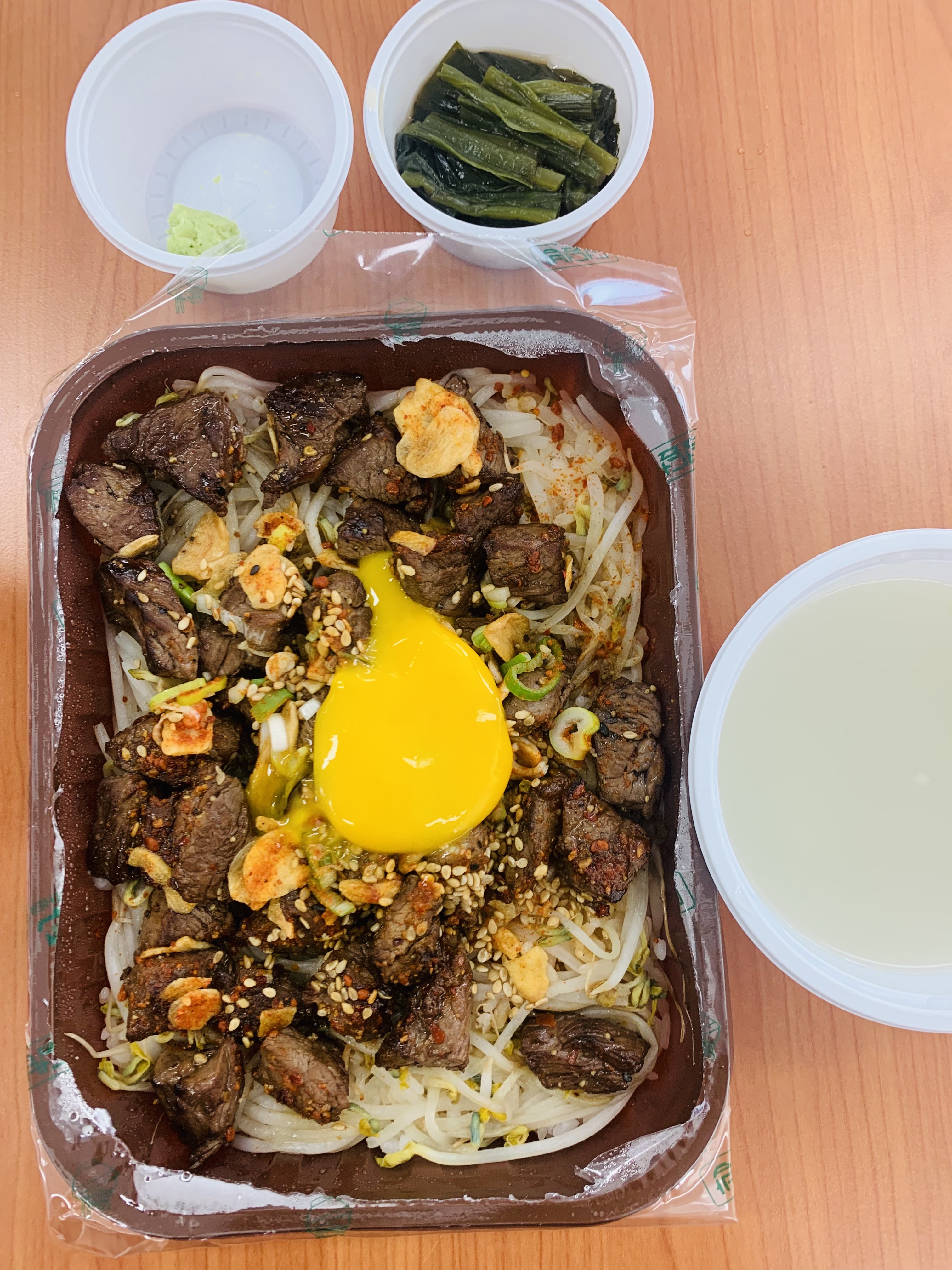 나는 스테이크 덮밥을 골랐는데