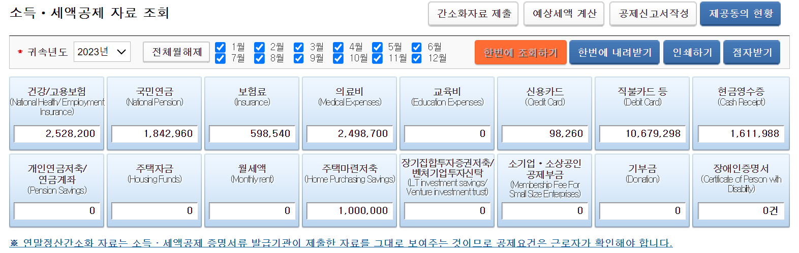 (인적공제, 주택자금, 교육비 등..)