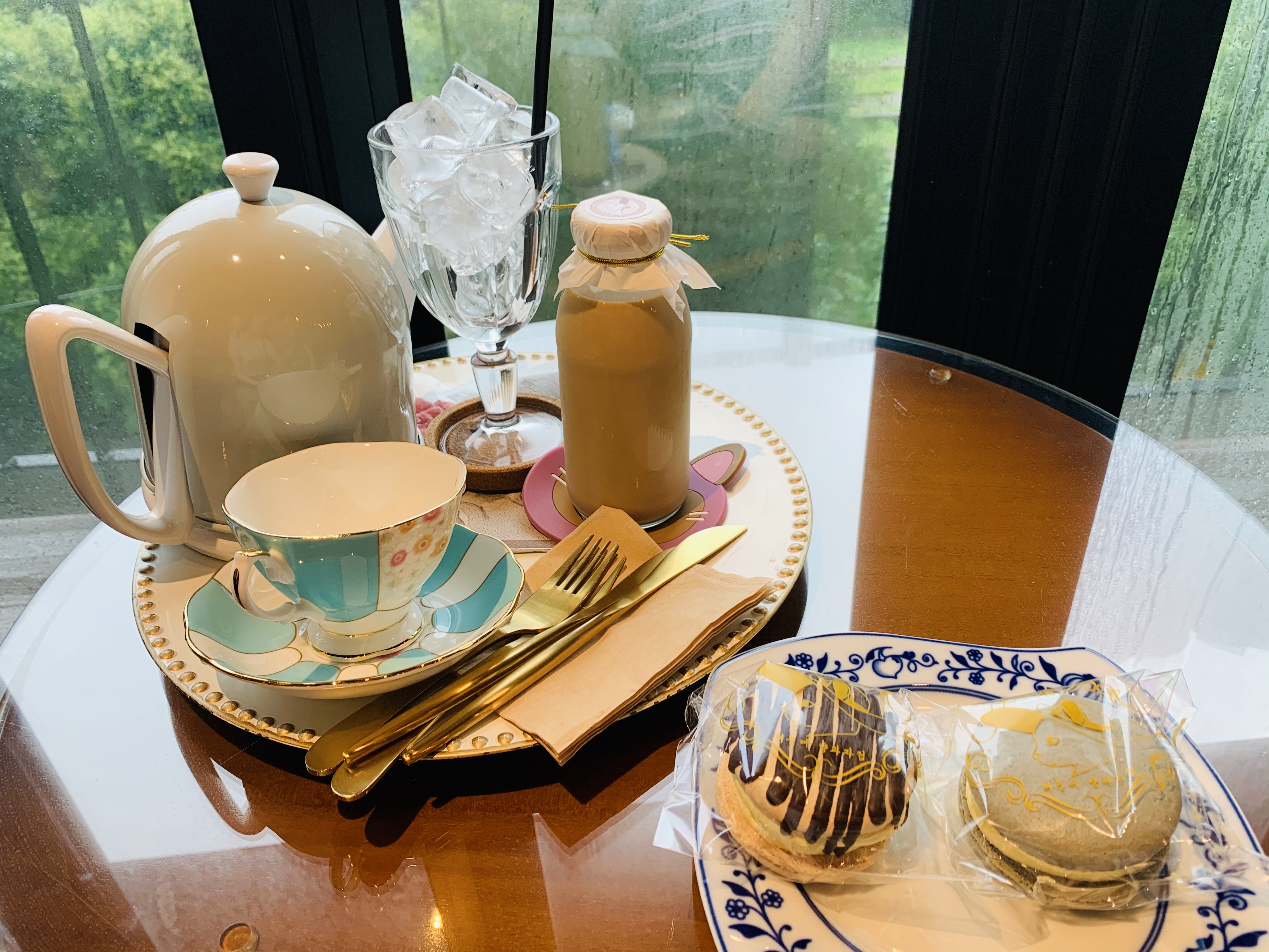 우리가 주문한 것은 밀크티와 얼그레이 티, 우유 브라우니 마카롱, 크림치즈 우유 찹쌀떡 마카롱
