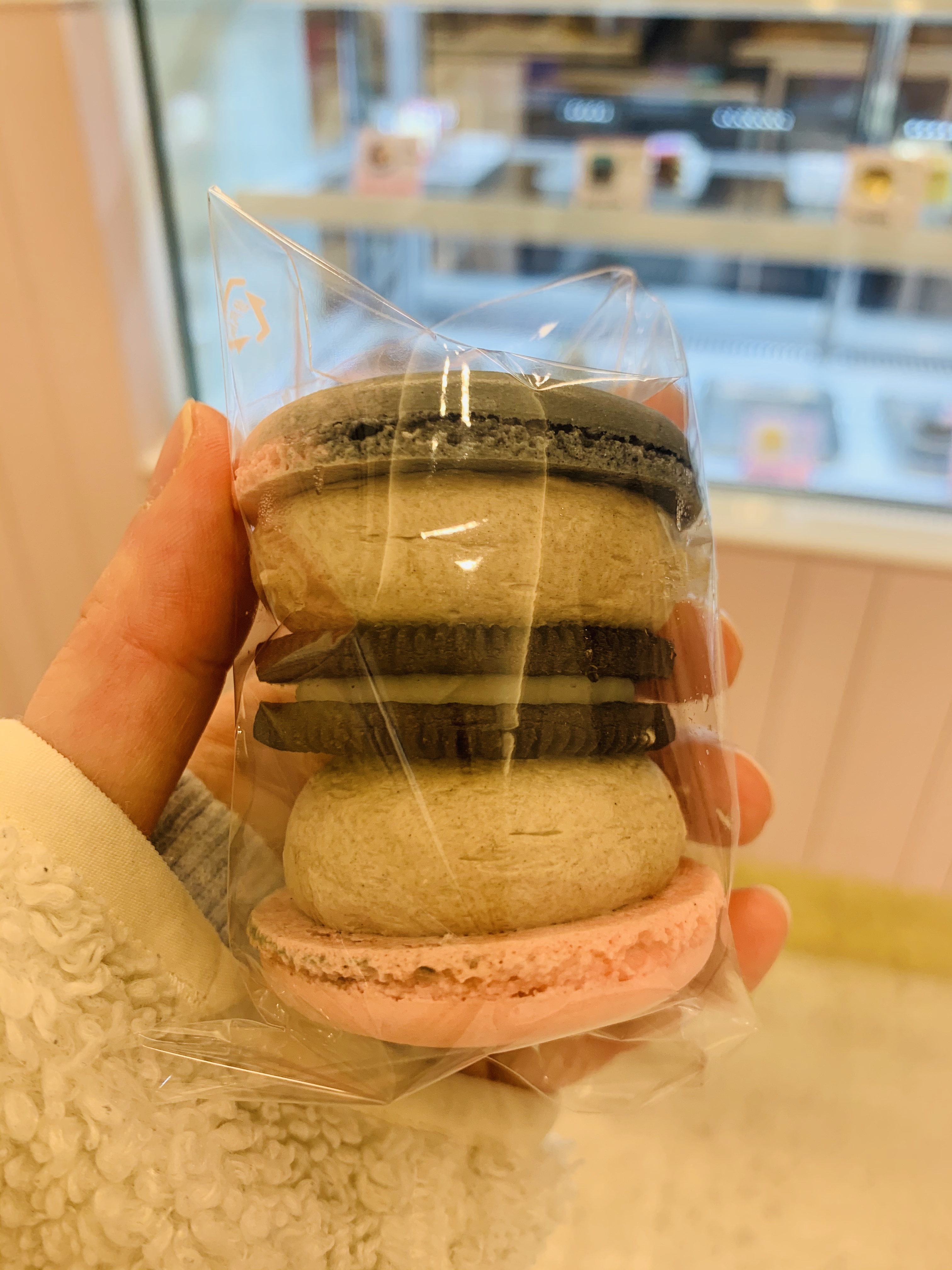 집에 들고 갈 마카롱은 박스와 보냉팩으로 꼼꼼히 포장하고 내가 먹을 쿠키크림치즈 마카롱은 따로 받았다