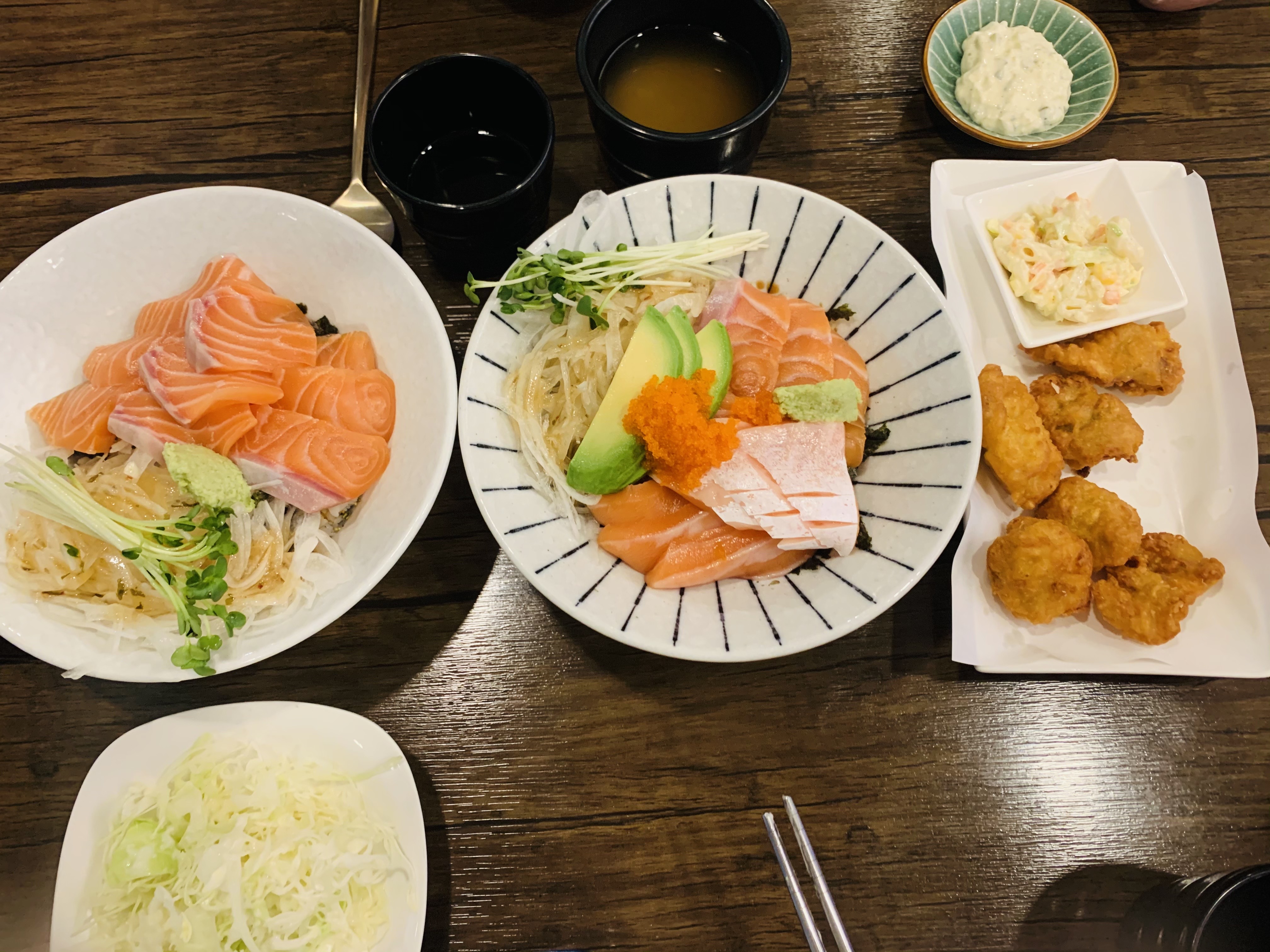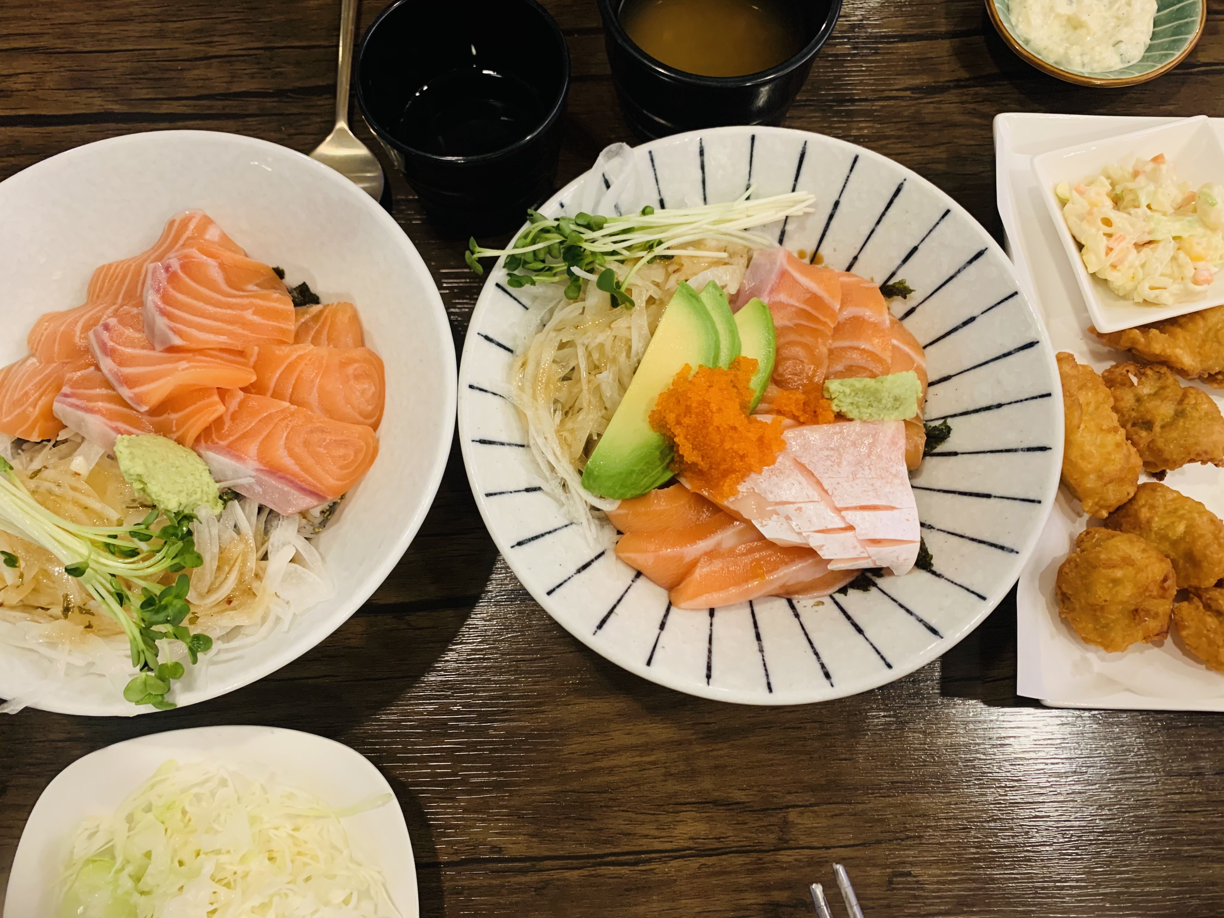 가라아게를 먹으며 조금 기다리니 연어 뱃살동과 사케동을 함께 서빙해주셨다