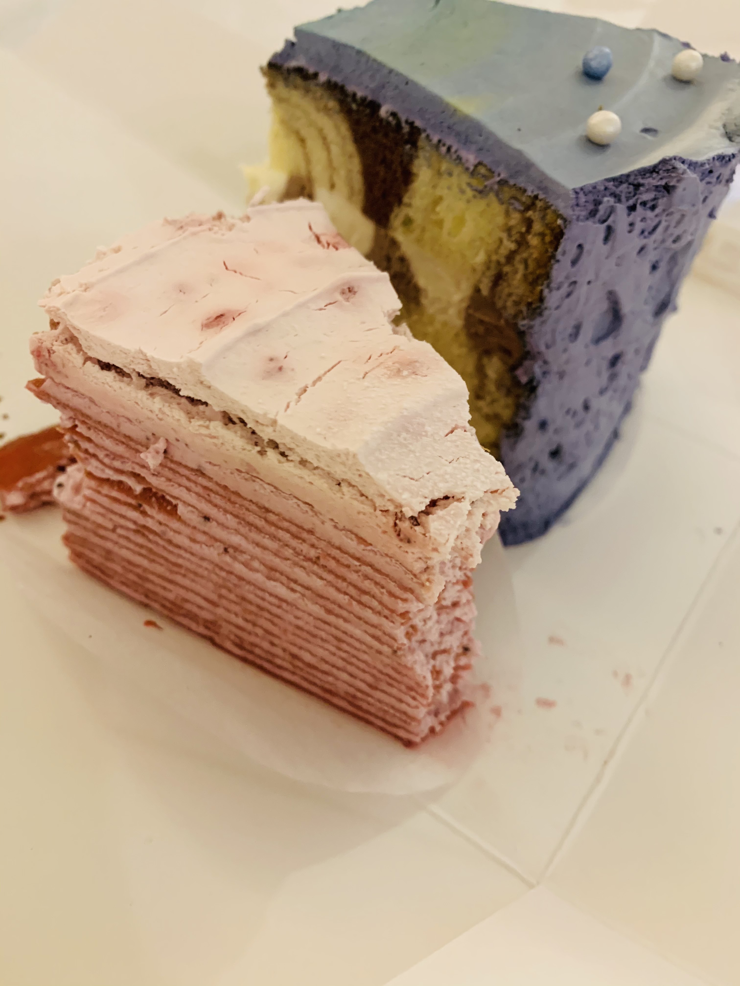 나는 이 중에서 우주케이크와 딸기 크레이프 케이크를 골랐다