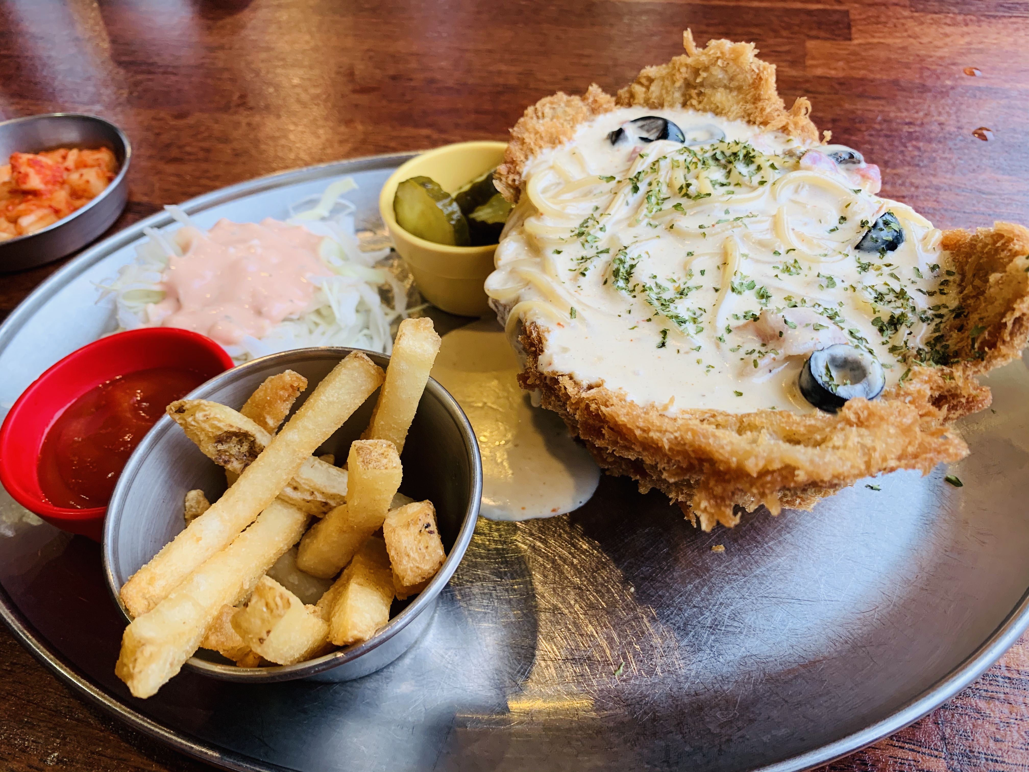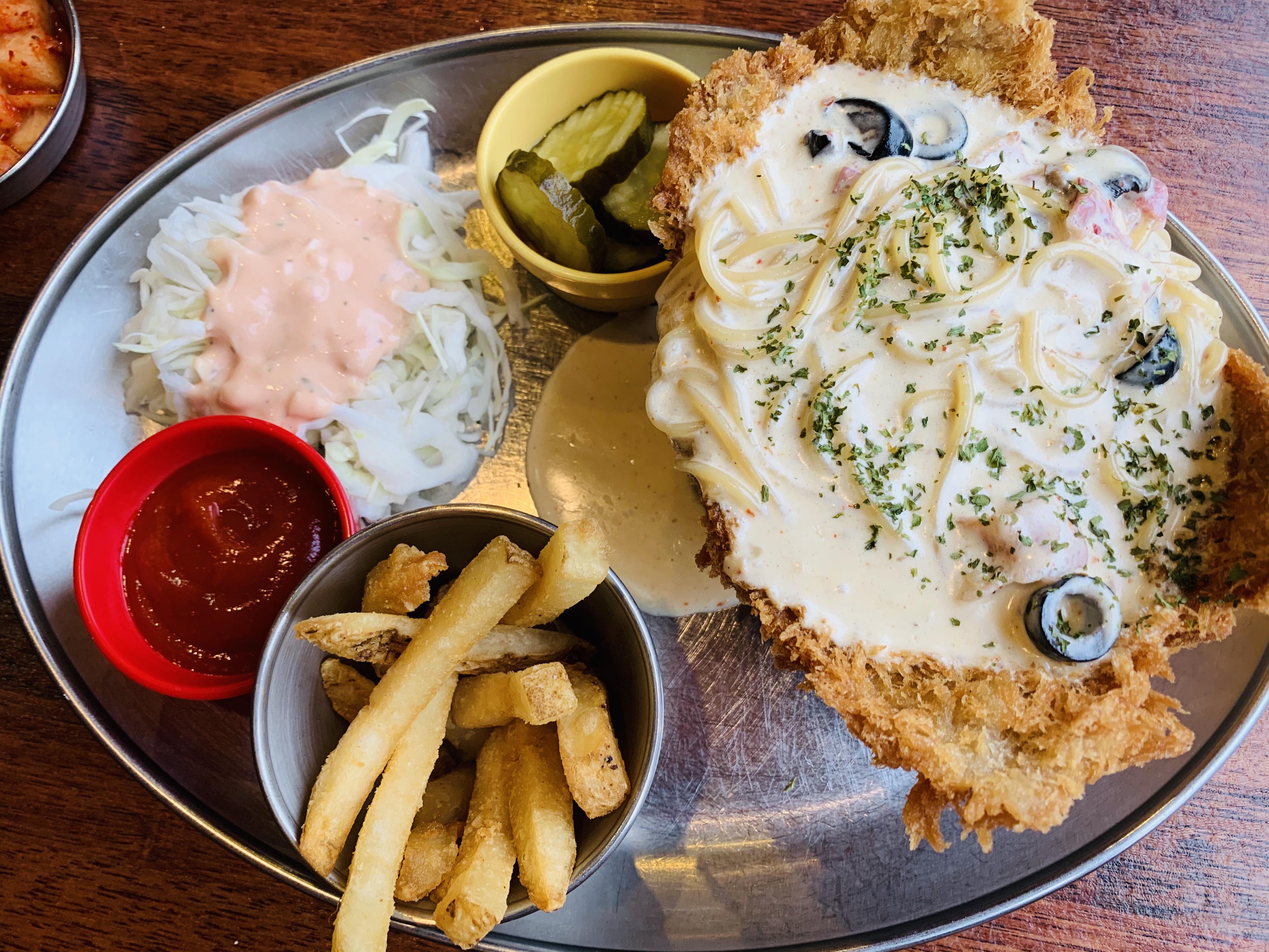 특히 내가 가장 궁금했던 것은 그릇 대신 돈까스에 담긴 스파이시 크림 파스타