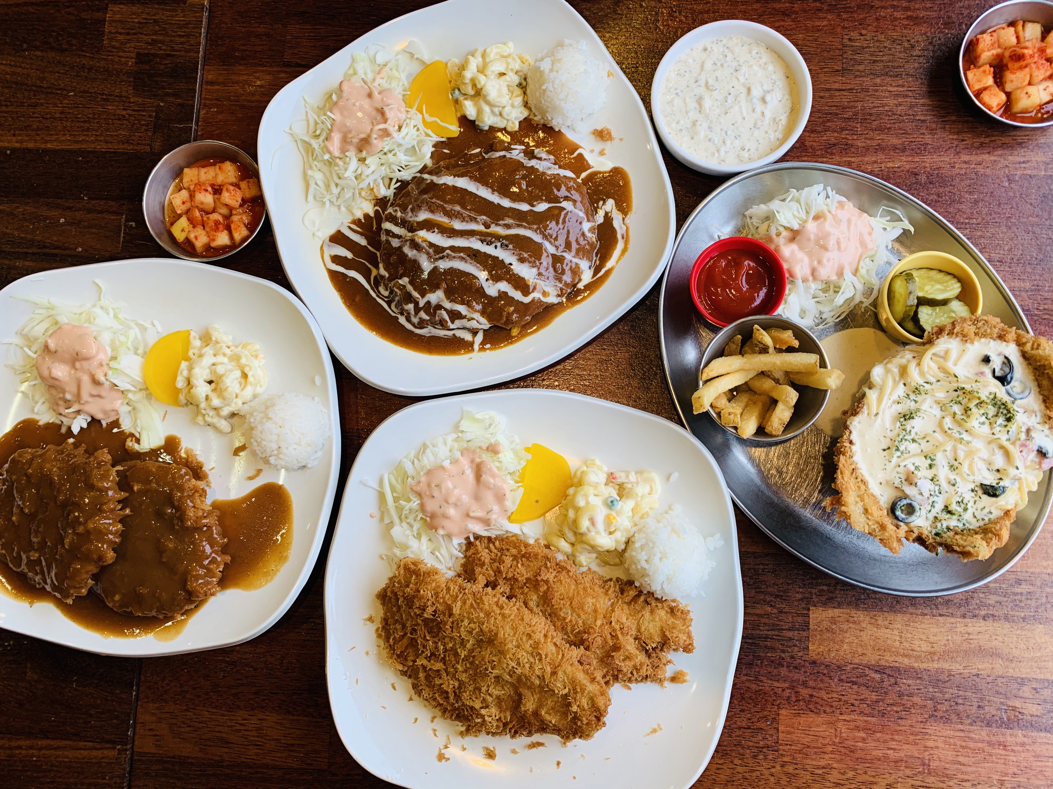 수프 음미하며 경양식 돈까스집 바이브를 느끼고 있으면 차례대로 나오는 돈까스들