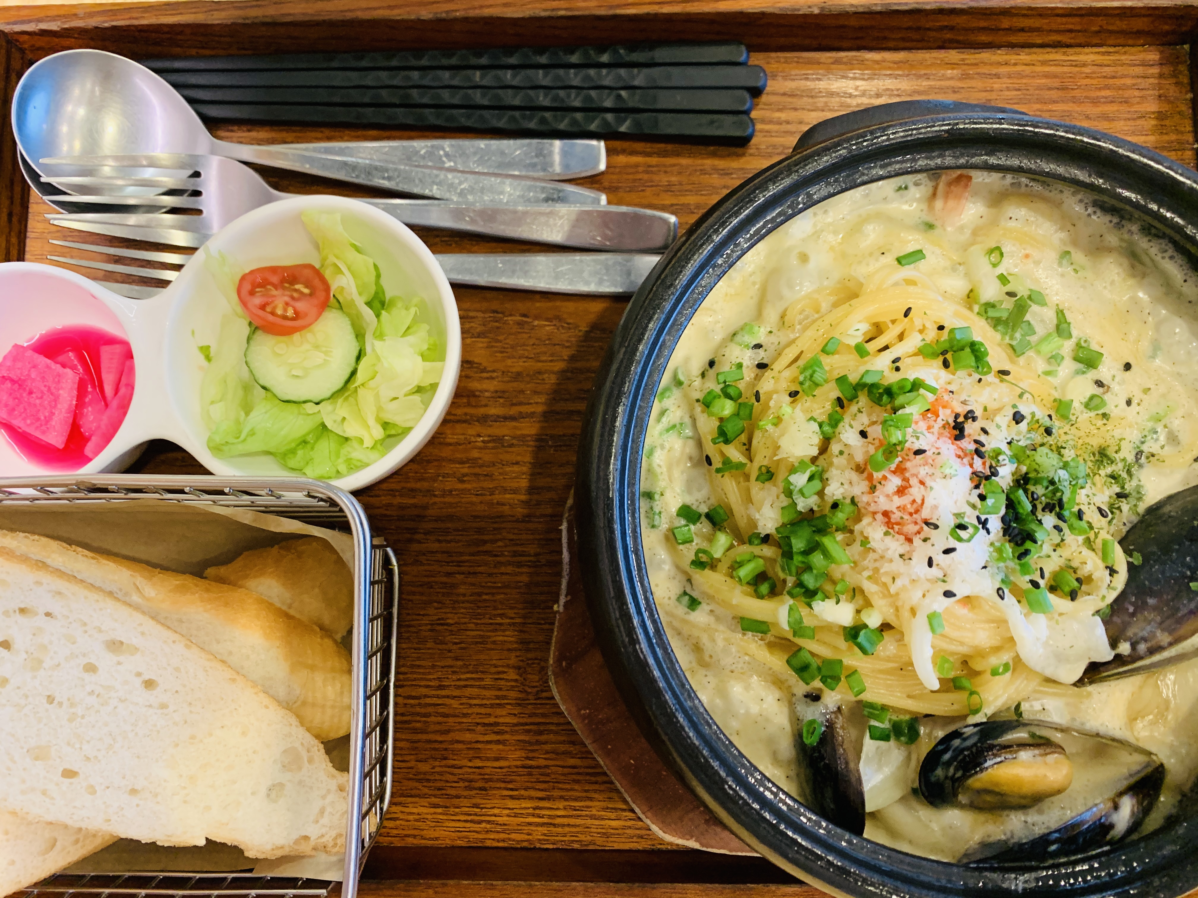 먼저 나온 뚝배기 크림 파스타 & 리조또의 가격은 18,000원