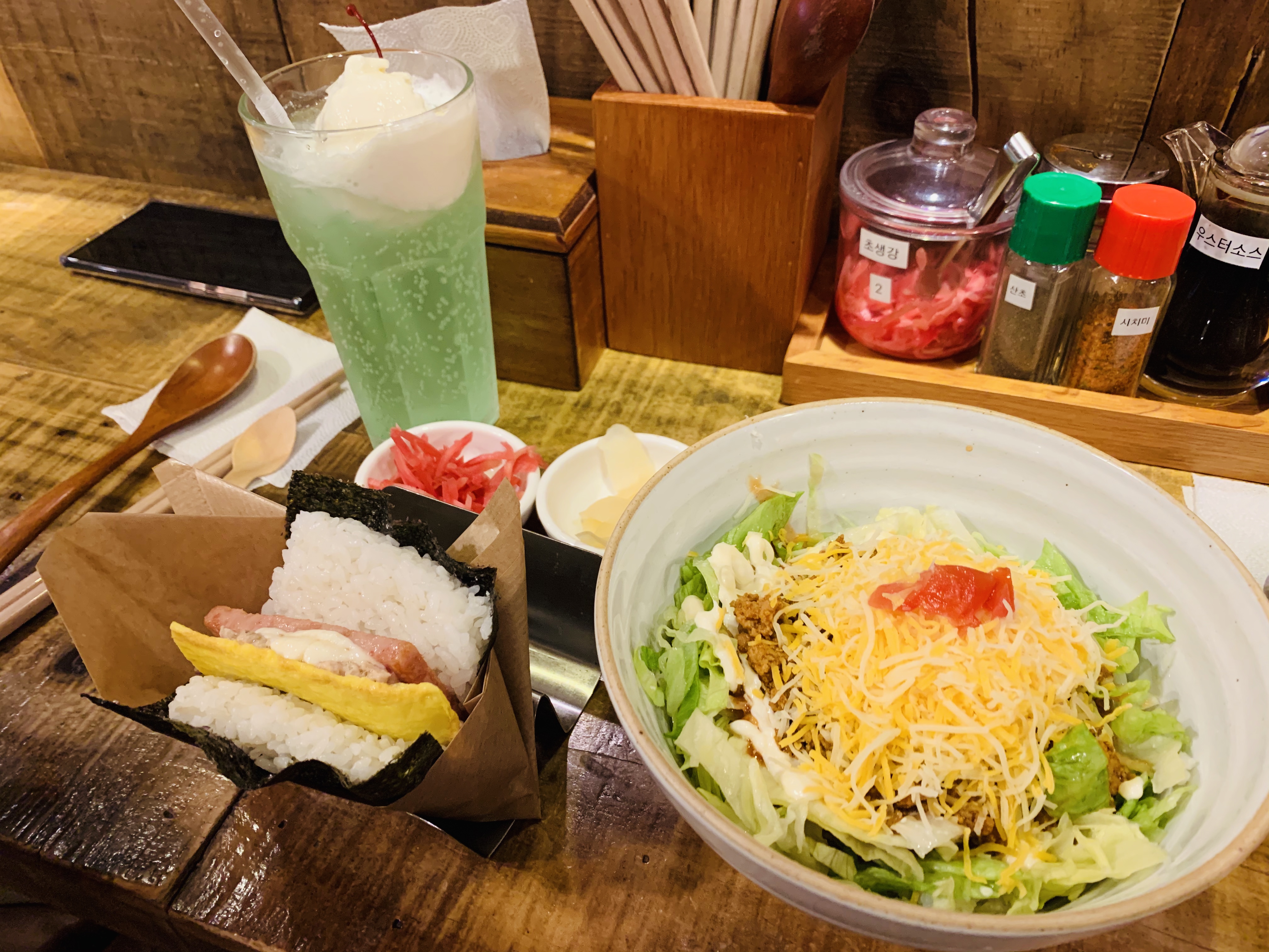 라무네, 포타마 오니기리, 타코 라이스가 먼저 나왔다