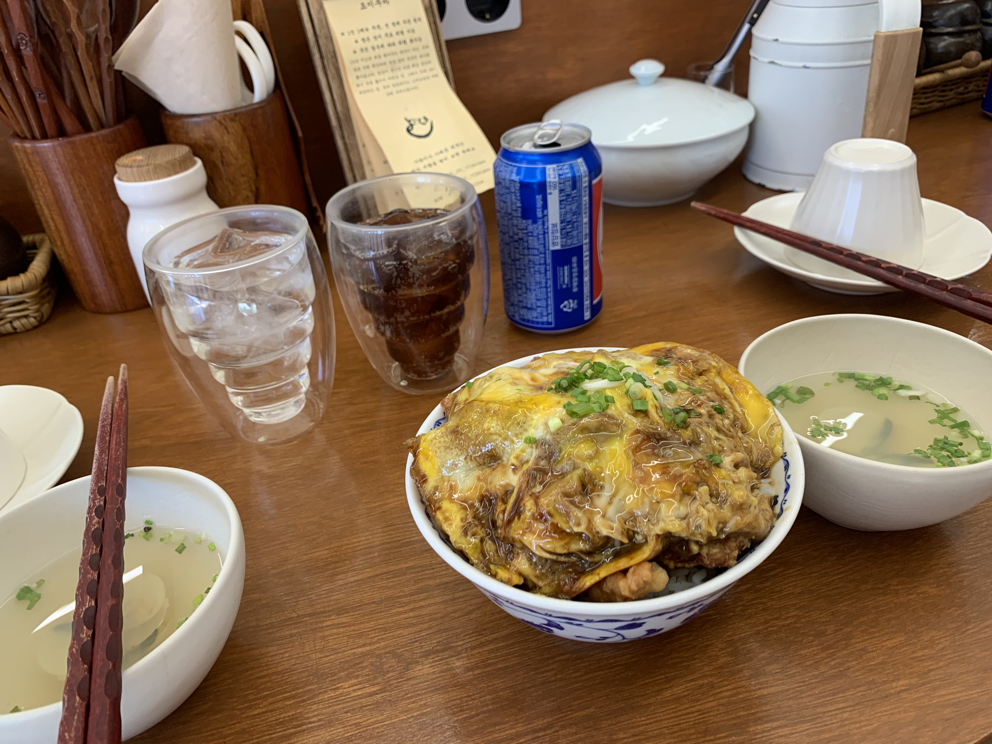 베이스는 오야코동과 비슷한데 닭고기 대신 닭튀김이 들어갔다고 생각하면 된다