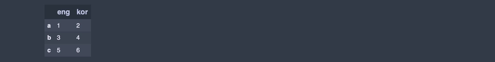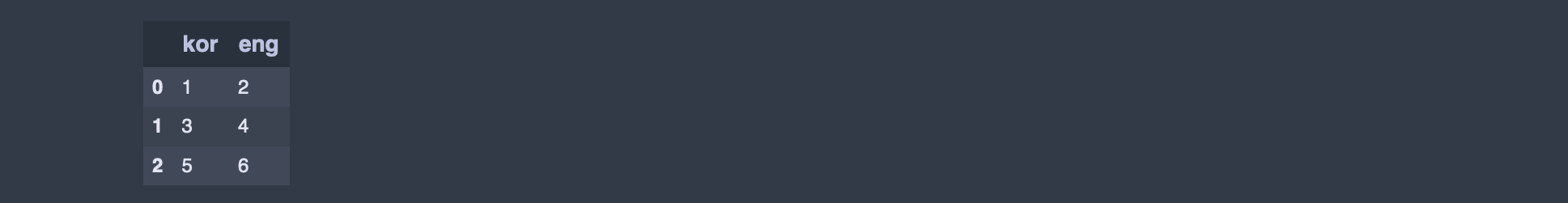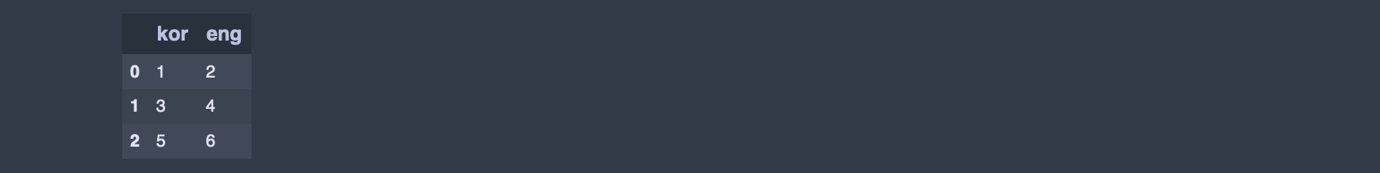 df1 = pd.DataFrame(d1, index=['a','b','c'],columns=['eng','kor'])