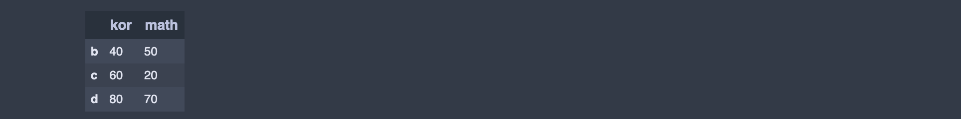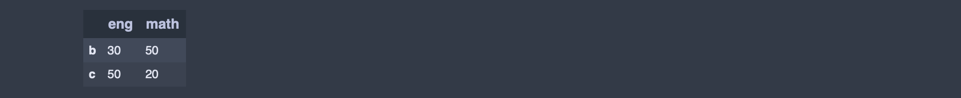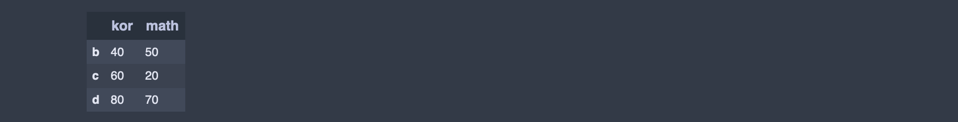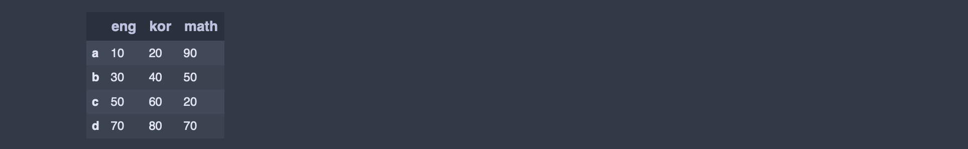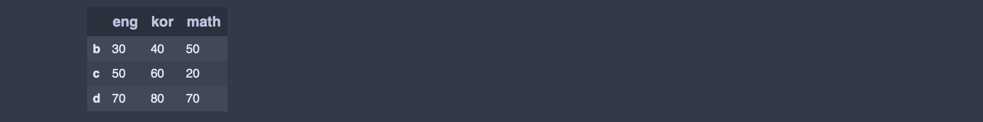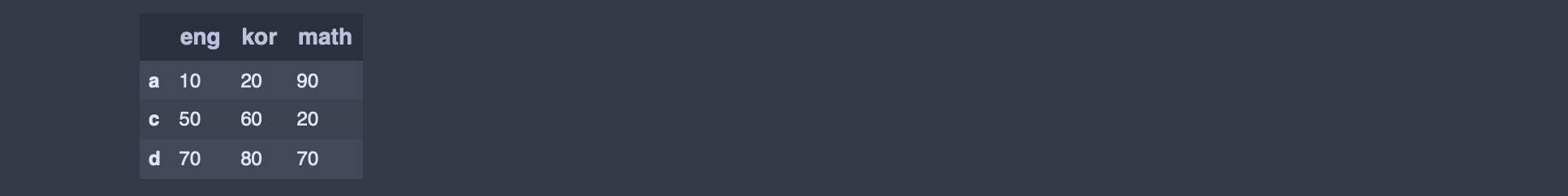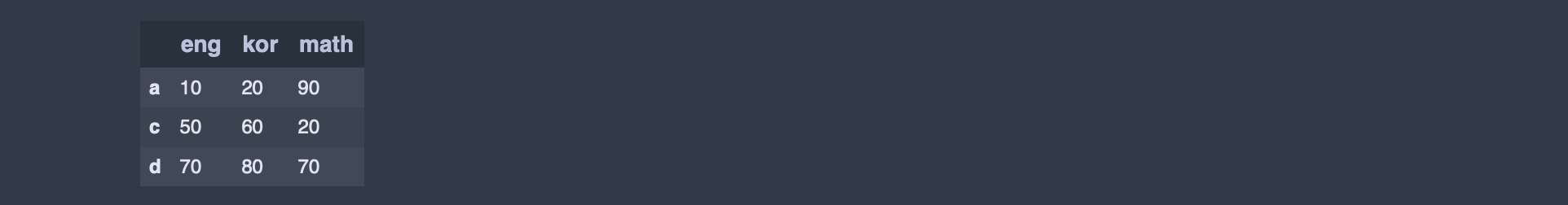 - df.loc[['a','c','d']] -> 원하는 행만 추출 하고 싶을 땐 리스트 사용