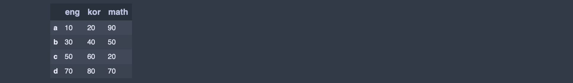 df = pd.DataFrame(data, index=['a','b','c','d'] )